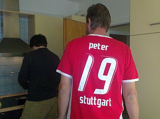 Peter hat Geburtstag und jetzt darf er im passenden Outfit Fußball gucke