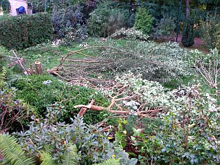 Büsche und Efeu gerodet Mirabellenwildwuchs und Flieder gefällt