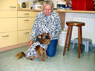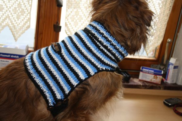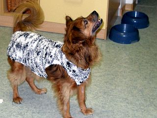 .Sieht schon komisch aus, so ein halbnackter Hund mit Schraube im Nacken. Deshalb haben wir die ganze Misere unter einer schicken Warnweste versteckt