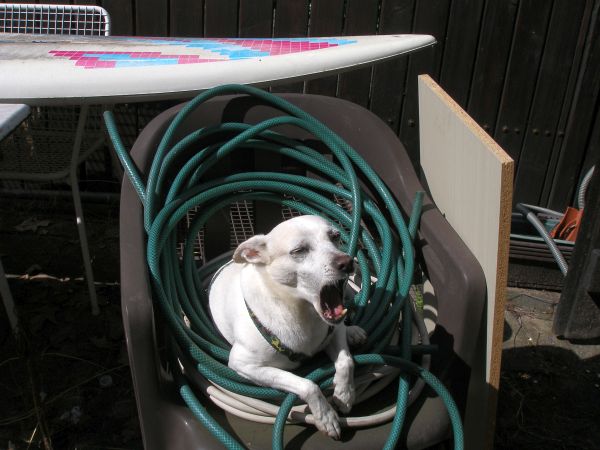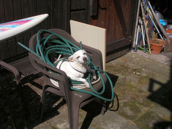 Gimli sucht sich ein "gemütliches" Bett im Gerümpel und genießt die Sonne