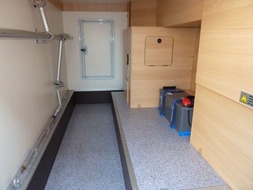 Er passt genau vor die Garage, und so sieht er innen aus: